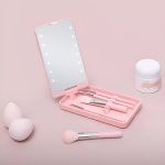 O conjunto de pincéis e o espelho LED encaixam perfeitamente na sua mala, permitindo-lhe retocar a sua maquilhagem com facilidade onde quer que o seu dia o leve.